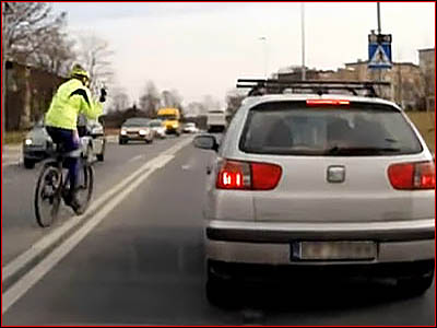6) Czy taka jazda rowerzysty środkiem jezdni jest zabroniona? (pyt. 57)