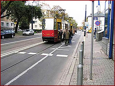 7) Czy trzeba zawsze się zatrzymać przed tą przerywaną linią, aby ułatwić pasażerom wsiadanie i wysiadanie? (pyt. 62)