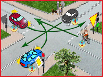10) Czy kolejność na tym skrzyżowaniu to: 3, 1, 2, 4? (pyt. 419)