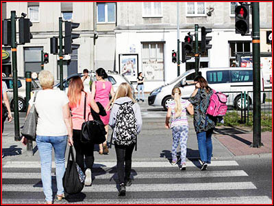 9) Czy kiedy piesi przechodzą na czerwonym świetle, to trzeba ich przepuścić? (pyt. 747)