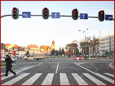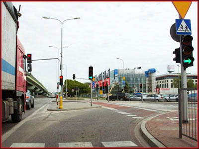 4) Czy po zapaleniu się zielonego światła, można jechać prosto przez to skrzyżowanie? (pyt. 752)