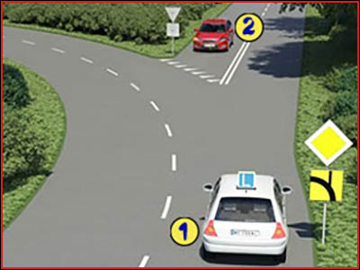 Nie, bo pojazd nr 1 cały czas jest na drodze głównej