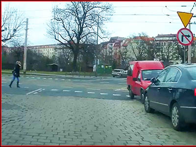 2) Czy jadąc jezdnią, musisz zachować bezpieczny odstęp od tak idącego pieszego? (pyt. 671)