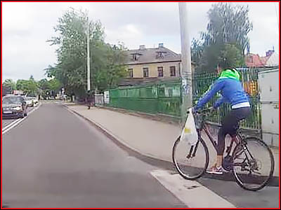 10) Czy ten rowerzysta jedzie po dobrej stronie drogi? (pyt. 687)