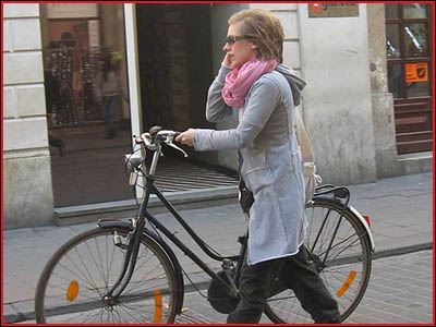 Nie! Przecież nie jedzie, tylko prowadzi rower