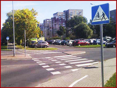 2) Czy ten znak oznacza, że rowerzyści mają tutaj pierwszeństwo przed pieszymi? (pyt. 524)