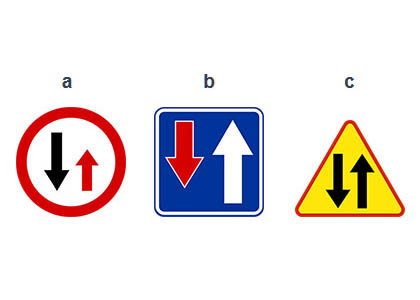 9) Czy znakiem który pokazuje Ci, że masz pierwszeństwo na skrzyżowaniu, jest znak oznaczony literą A? (pyt. 589)