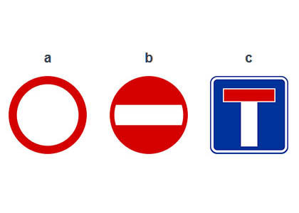 3) Czy znakiem który zakazuje ruchu w obu kierunkach, jest znak oznaczony literą A? (pyt. 592)